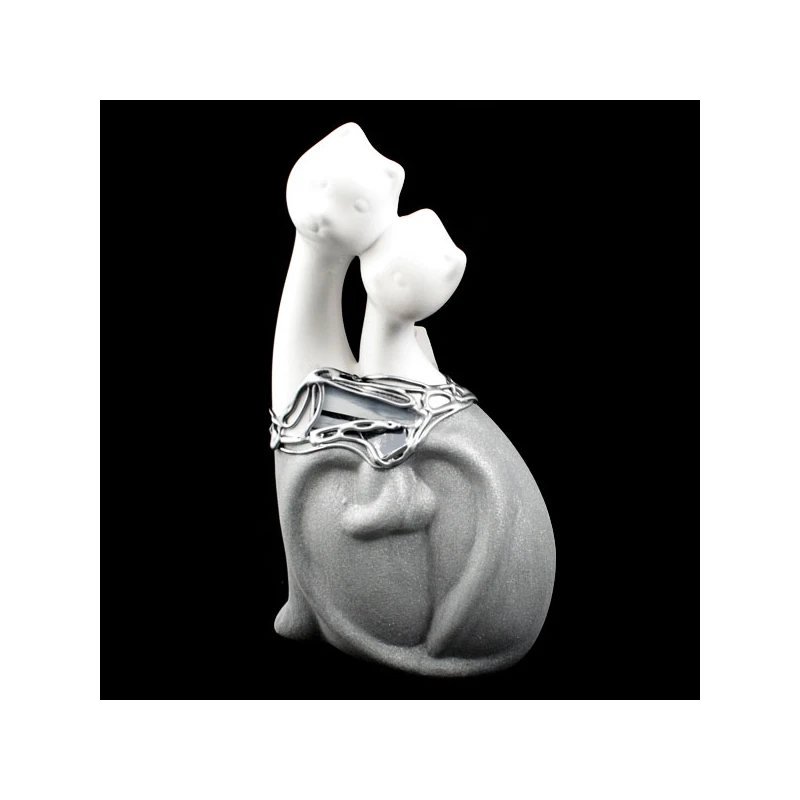 CER-KOT PODWÓJNY Z SERCEM *DECOR WITRAŻ 1/2 BROKAT BIAŁY* C-678-1/2W