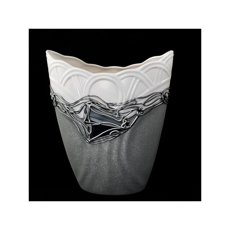 CER-WAZON PŁASKI KÓŁKO NISKI *DECOR WITRAŻ 1/2 BROKAT BIAŁY* C-856-1/2W