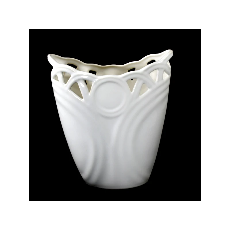CER-WAZON PŁASKI KÓŁKO NISKI AŻUR *SZKLIWO BIAŁE* C-857SZB