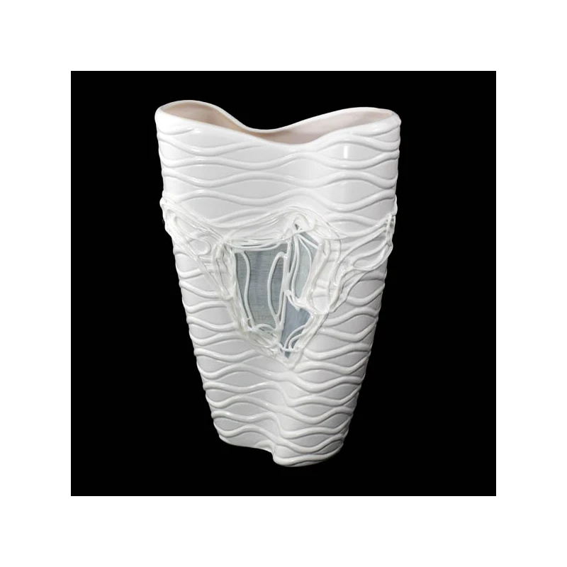 CER-WAZON PODWÓJNY Z RELIEFEM *DEKOR WITRAŻ BIALY* C- 609W