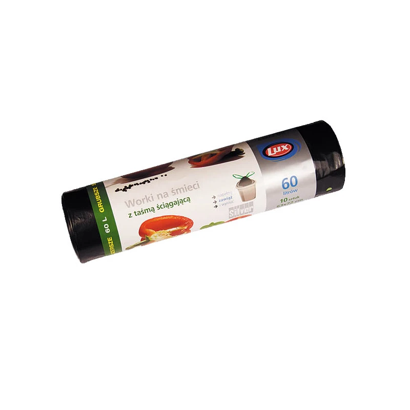 LUX-WORKI NA SMIECI 60L LDPE Z TAŚMĄ A'10 CZARNE