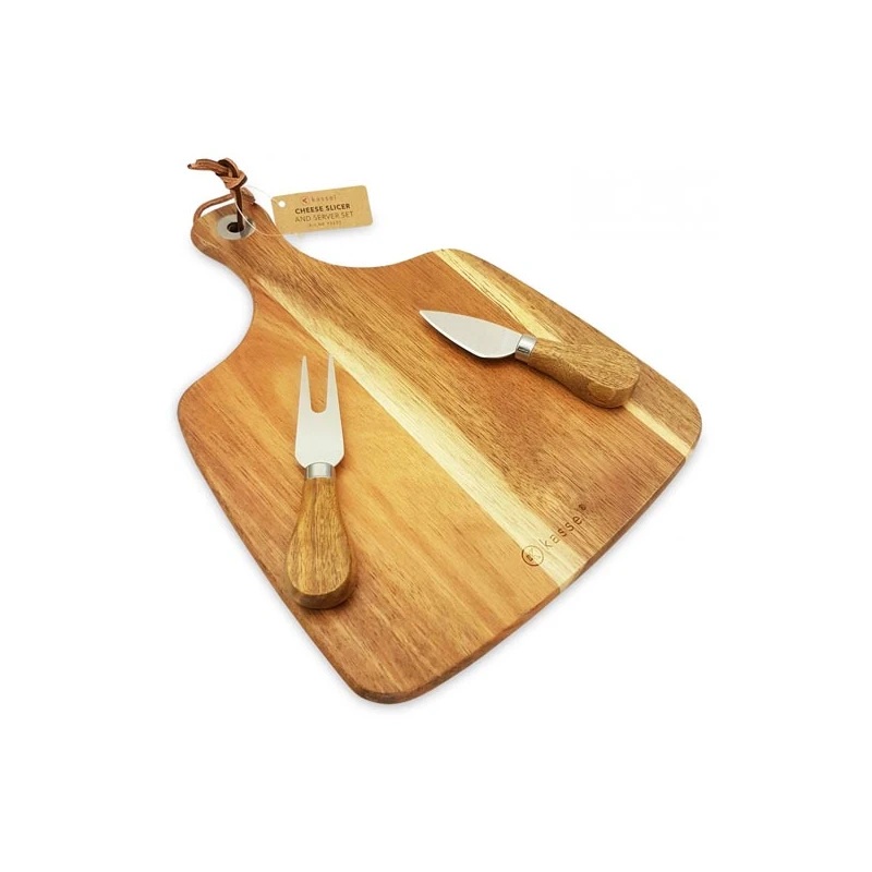 KAS-KPL. DESKA DO KROJENIA *AKACJA* 30X22X1.2CM+NÓŻ I WIDELCZYK DO SERA