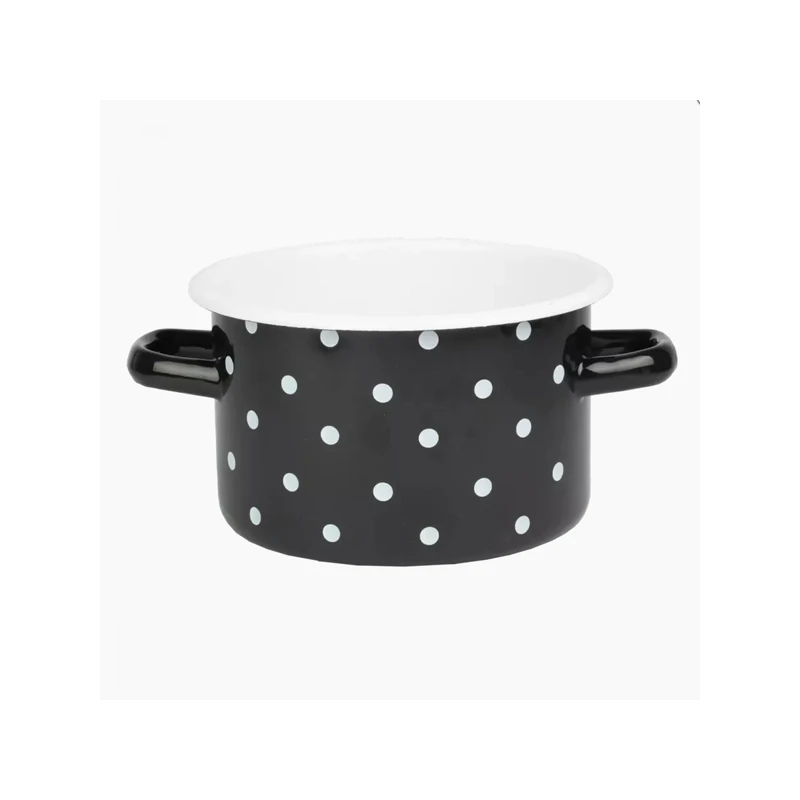 RYB-GARNEK EMALIOWANY 16CM 2L CZARNY KROPKI BIAŁE 1610
