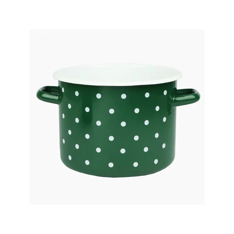 RYB-GARNEK EMALIOWANY 20CM 4,5L SZMARAGDOWY KROPKI BIAŁE 1615