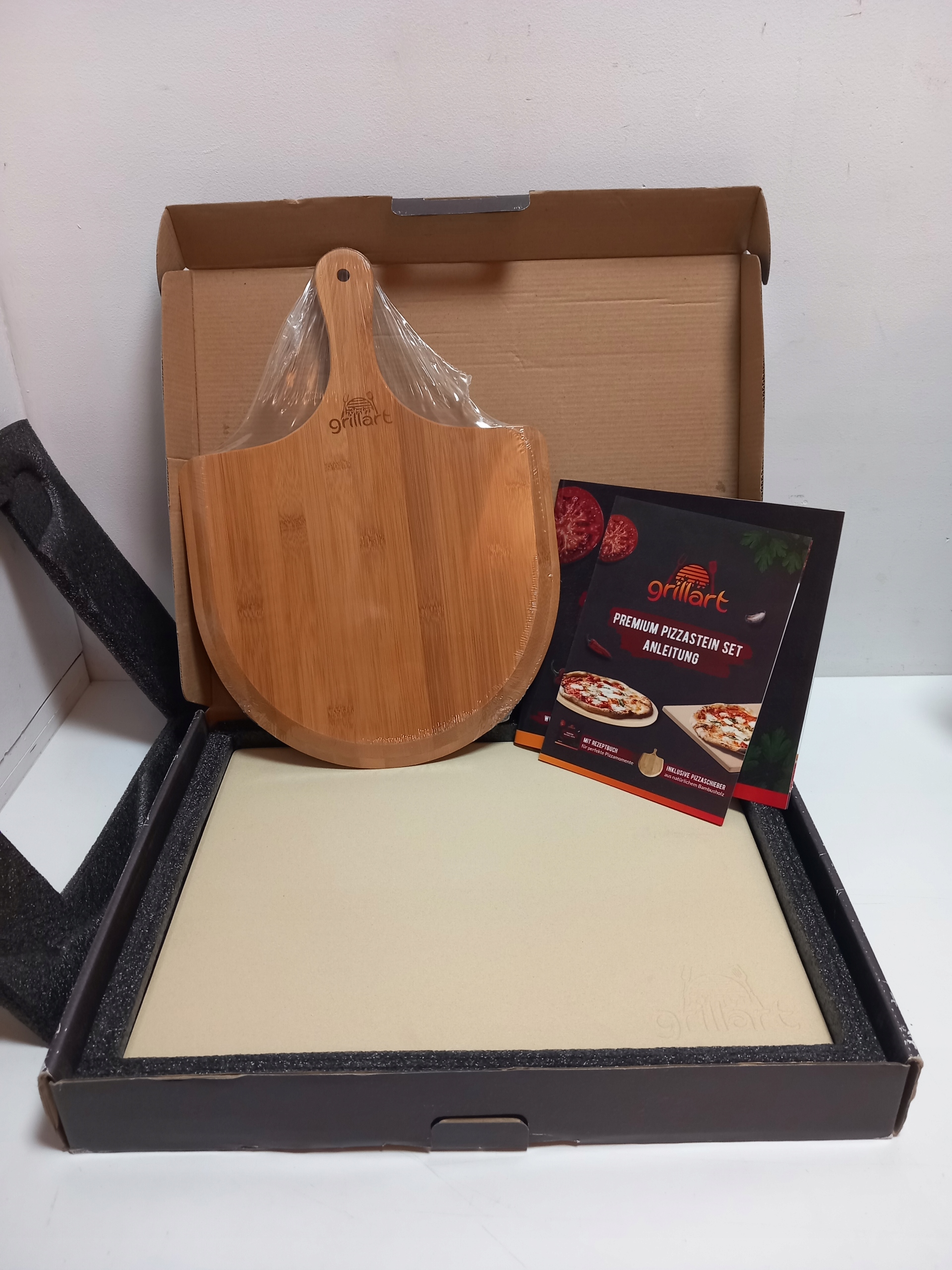 Łącznie z szufelką do pizzy: z zestawem kamieni do pizzy możesz idealnie zacząć. W zestawie znajduje się łopatka do pizzy wykonana z wysokiej jakości drewna bambusowego oraz książka z przepisami (może nie być dostępna w języku polskim) i książka z przepisami na pizzę. Zestaw nadaje się również doskonale jako prezent na każdą okazję