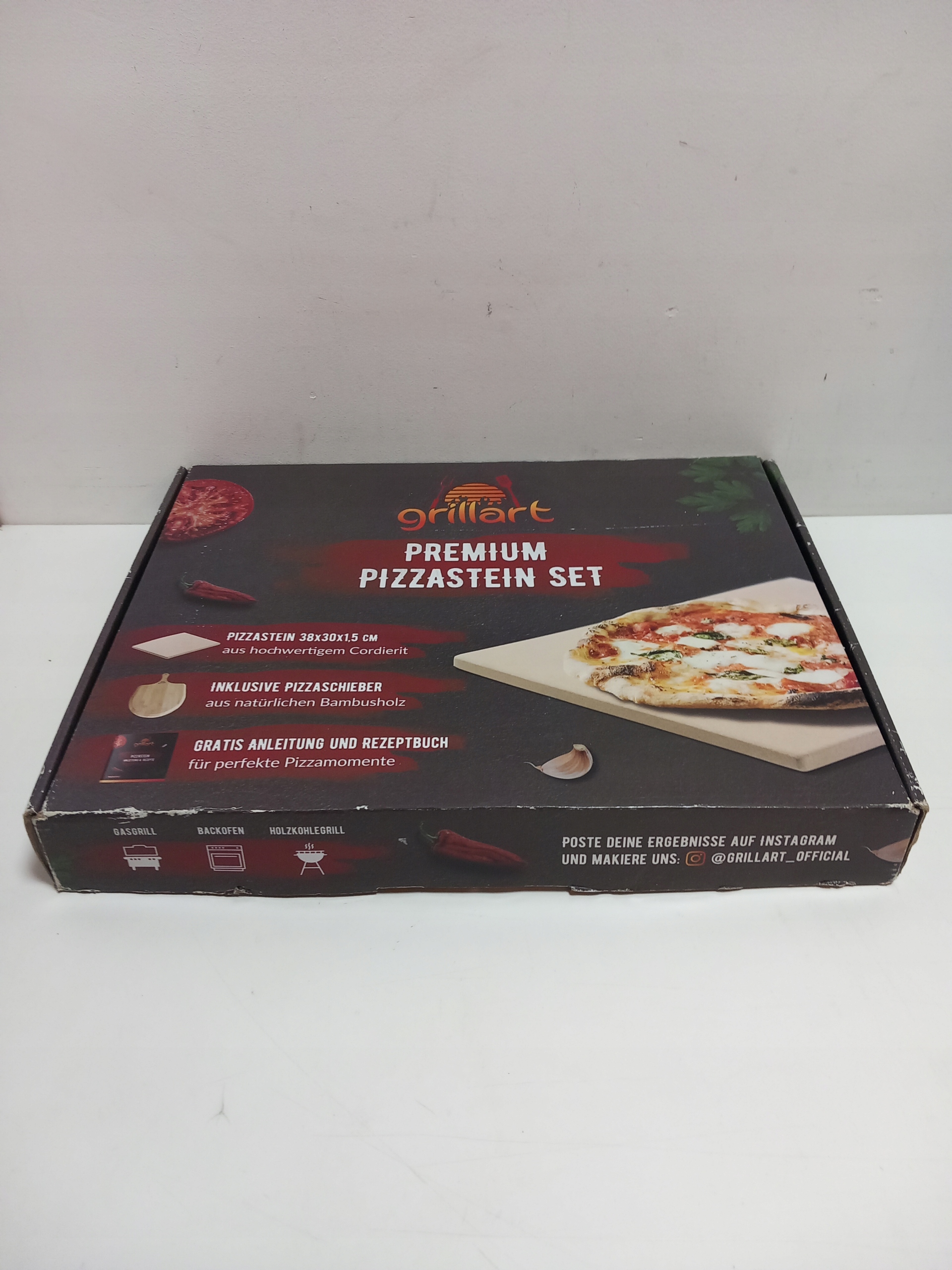 Kamień do pizzy premium do grilla gazowego, grilla na węgiel drzewny i piekarnika w zestawie – wysokiej jakości prostokątny kamień do pizzy z łopatką do pizzy i książką z przepisami – również optymalnie nadaje się jako kamień do pieczenia chleba
