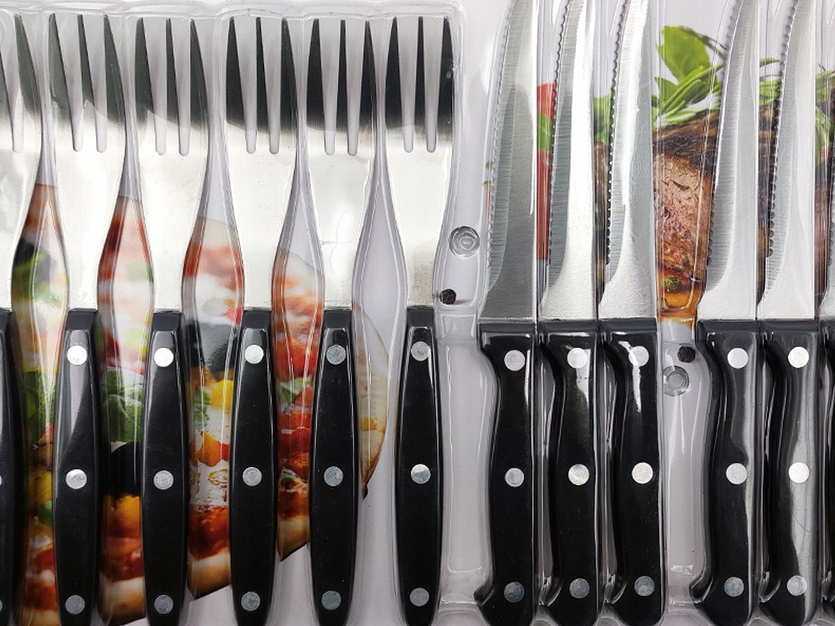 Zestaw został zaprojektowany z myślą o wytrzymałości i komforcie użytkowania. Ostrza ze stali nierdzewnej zapewniają odporność na korozję oraz precyzję krojenia, co czyni go idealnym wyborem nawet dla wymagających miłośników dobrego jedzenia. Sztućce są łatwe w utrzymaniu czystości - możliwość mycia w zmywarce pozwala zaoszczędzić czas podczas sprzątania po posiłkach. Solidne, przechodzące przez całą długość trzonka ostrza dodają pewności, że zestaw wytrzyma długie lata intensywnego użytkowania.