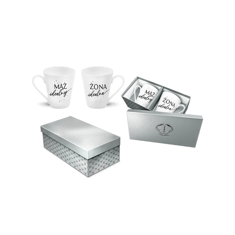BG-ZESTAW 2-KUBKÓW SKOŚNYCH SREBRNE 300ML *ŻONA IDEALNA/MĄŻ IDEALNY*