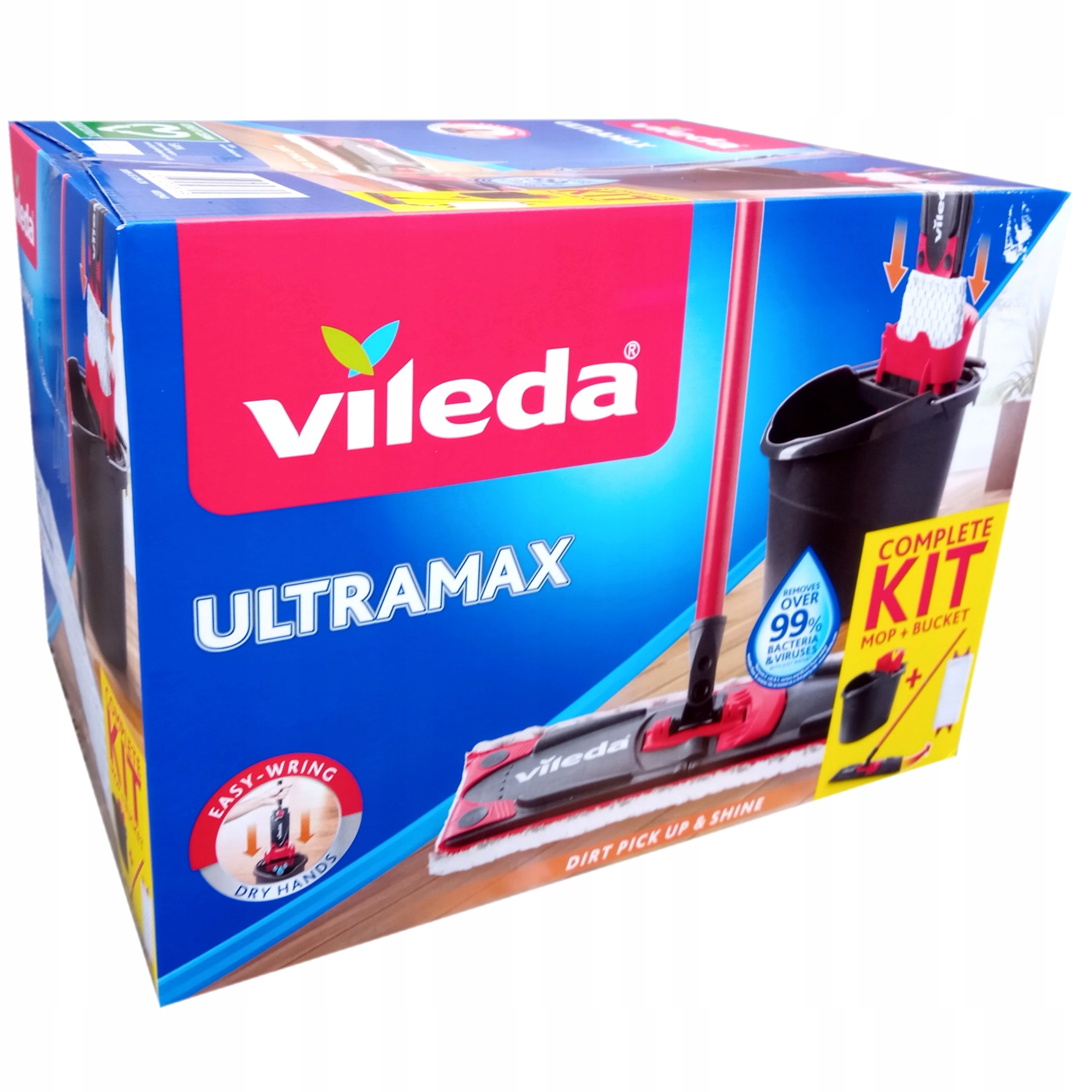 VILEDA MOP PŁASKI ULTRAMAX BOX to kompletny zestaw do mycia podłóg, który zapewnia skuteczne i wygodne czyszczenie bez kontaktu z wodą.