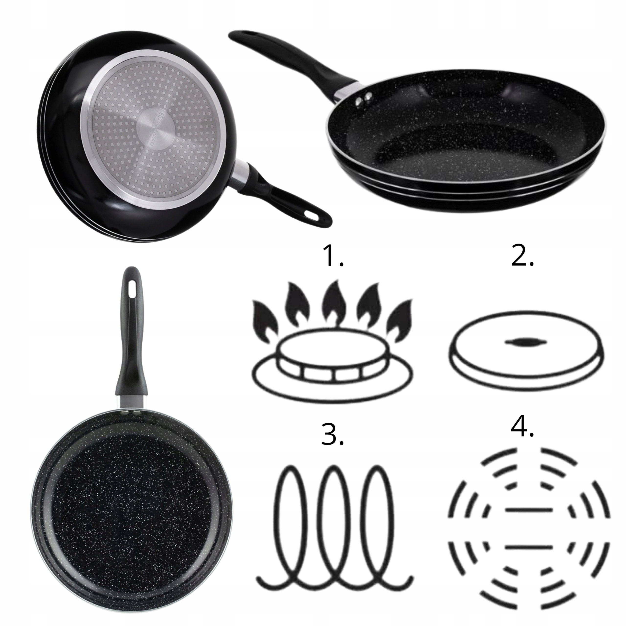 - Wysoka jakość wykonania: Aluminium zapewnia doskonałe przewodzenie ciepła i równomierne smażenie.