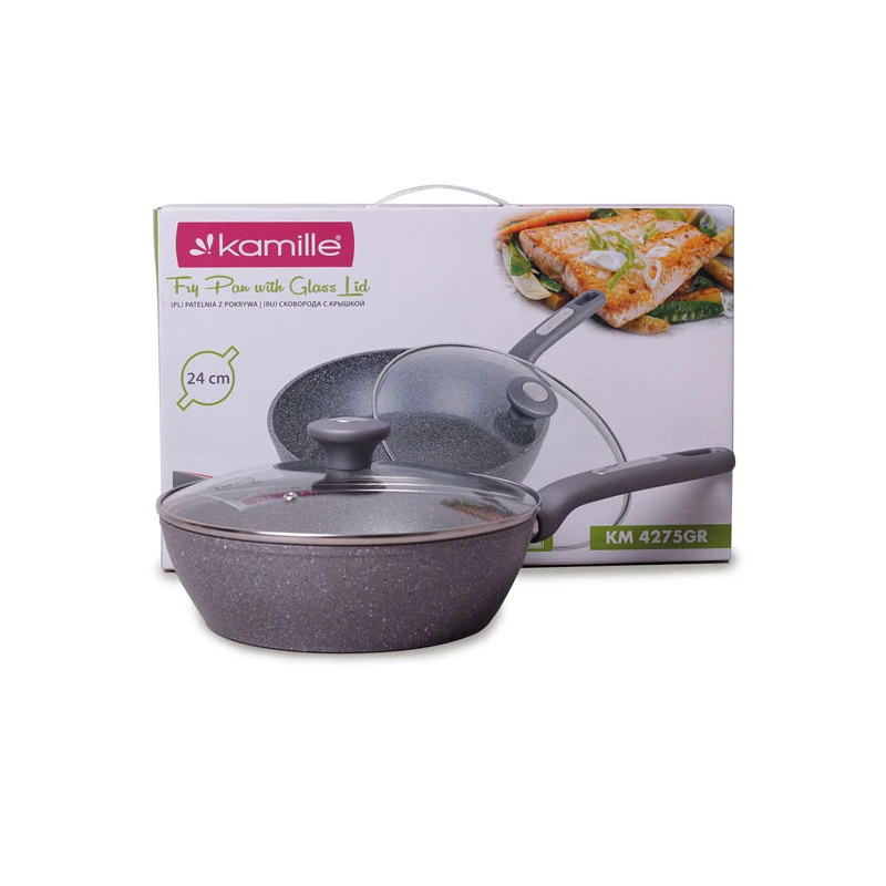 PATELNIA 24CM GRANITOWA GŁĘBOKA Z POKRYWĄ 4275GR
