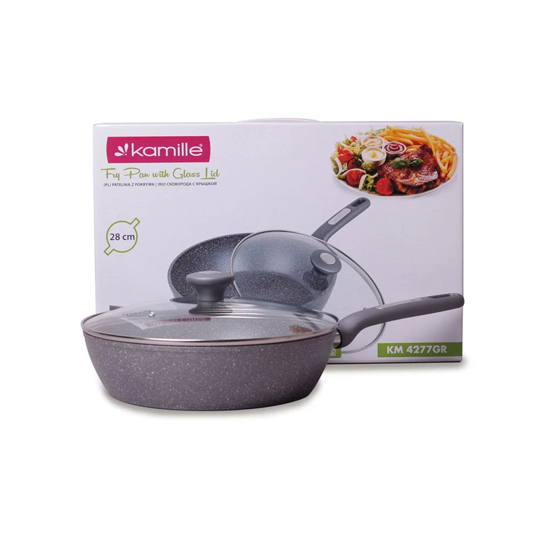 PATELNIA 28CM GRANITOWA GŁĘBOKA Z POKRYWĄ 4277GR