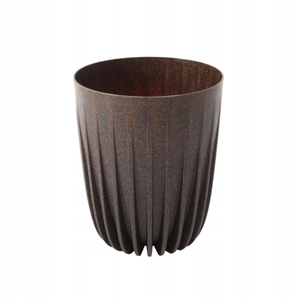 Doniczka w kształcie osłonki to doskonały wybór dla osób ceniących elegancki i nowoczesny design. Dzięki geometrycznym, wypukłym elementom, stanowi efektowną ozdobę, która przyciąga wzrok. Kompozytowy materiał składający się z polipropylenu, wiórów drewnianych i łupin kawy daje naturalny wygląd, a zarazem trwałość. Osłonka sprawdzi się zarówno w klasycznych, jak i nowocześnie urządzonych wnętrzach. Jest idealna do ustawienia roślin w domu, ale też świetnie nadaje się na balkon czy do ogrodu.