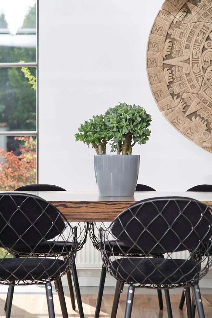 Doniczka Lamela zachwyca swoim wyglądem i wysokim połyskiem, który dodaje jej elegancji i wyrafinowania. Klasyczny kształt i intensywny kolor brąz-frappe sprawiają, że doniczka stanowi doskonałe tło dla roślin, podkreślając ich piękno i urok.