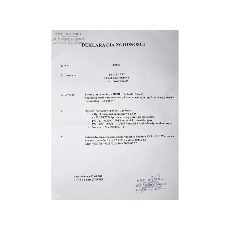 ELJOT-SZNUR PRZYŁĄCZENIOWY POJEDYNCZY 1,9M