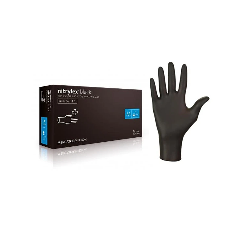 AT-RĘKAWICZKI NITRYLOWE *M* CZARNE /100/