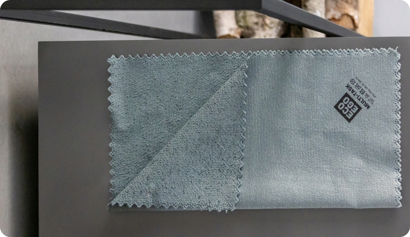 Niezawodna skuteczność mikrofibry, wykonanej w 67% z poliestru z recyklingu, pozwala zadbać o dom oraz środowisko.