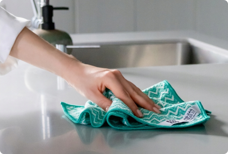 ✅Nasza ściereczka ZIG-ZAG wyróżnia się podwójną strukturą - gładką do polerowania i wzorzystą do delikatnego szorowania. Ta zaawansowana technologia umożliwia różnorodne zastosowania: od czyszczenia zaschniętych plam na armaturze, przez polerowanie frontów meblowych, aż po delikatne czyszczenie karoserii samochodu. Dzięki wyjątkowej chłonności mikrofibry, możesz również używać jej na sucho do wchłaniania kurzu i brudu z różnych powierzchni. Co więcej, lekka struktura ściereczki zapobiega wzbijaniu się pyłu w powietrze, co jest szczególnie korzystne dla osób cierpiących na alergie
