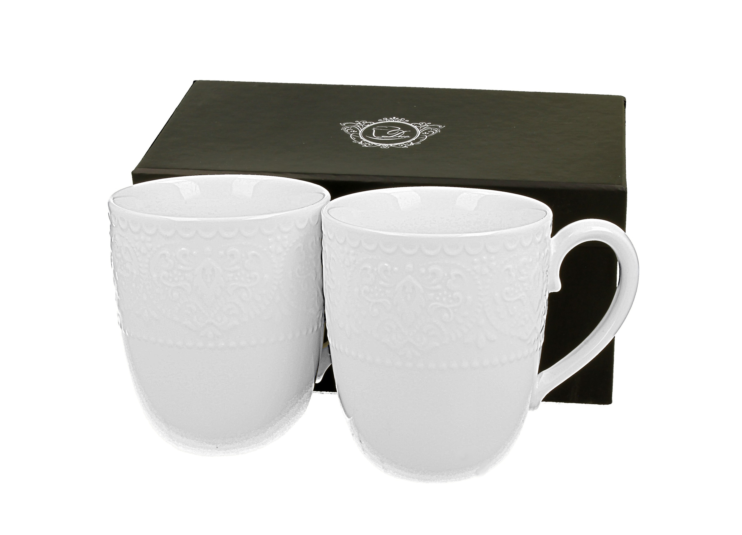 Zestaw eleganckich kubków porcelanowych to idealny dodatek do każdego stołu. Ich uniwersalny biały kolor i delikatne tłoczenia w kwiatowy wzór nadają im wyjątkowego charakteru. Dzięki klasycznemu designowi kubki pasują zarówno do nowoczesnych, jak i tradycyjnych wnętrz. Duża pojemność 370 ml pozwala na wygodne delektowanie się ulubionym napojem – niezależnie od tego, czy to poranna kawa, czy relaksująca herbata. Wykonane z wysokiej jakości porcelany, kubki są wytrzymałe i odporne na codzienne użytkowanie, co czyni je praktycznym wyborem.