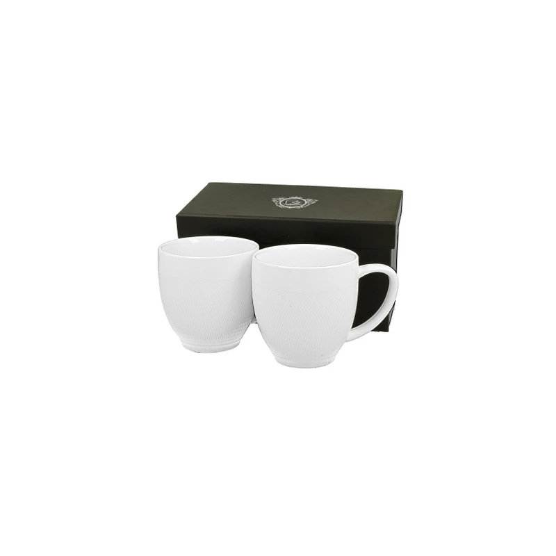 Ten zestaw porcelanowych kubków wyróżnia się elegancją i ponadczasowym stylem. Klasyczny okrągły kształt, ozdobiony zjawiskowymi tłoczeniami w formie drobnych diamencików, doskonale sprawdza się zarówno w nowoczesnych, jak i klasycznych wnętrzach. Wysokiej jakości porcelana zapewnia trwałość produktu, który świetnie nadaje się do codziennego użytkowania. Dzięki pojemności 350 ml możesz cieszyć się dużą kawą, herbatą czy ulubionym gorącym napojem. Kubki te łączą nowoczesne wzornictwo z funkcjonalnością, będąc estetycznym dodatkiem w każdej kuchni.