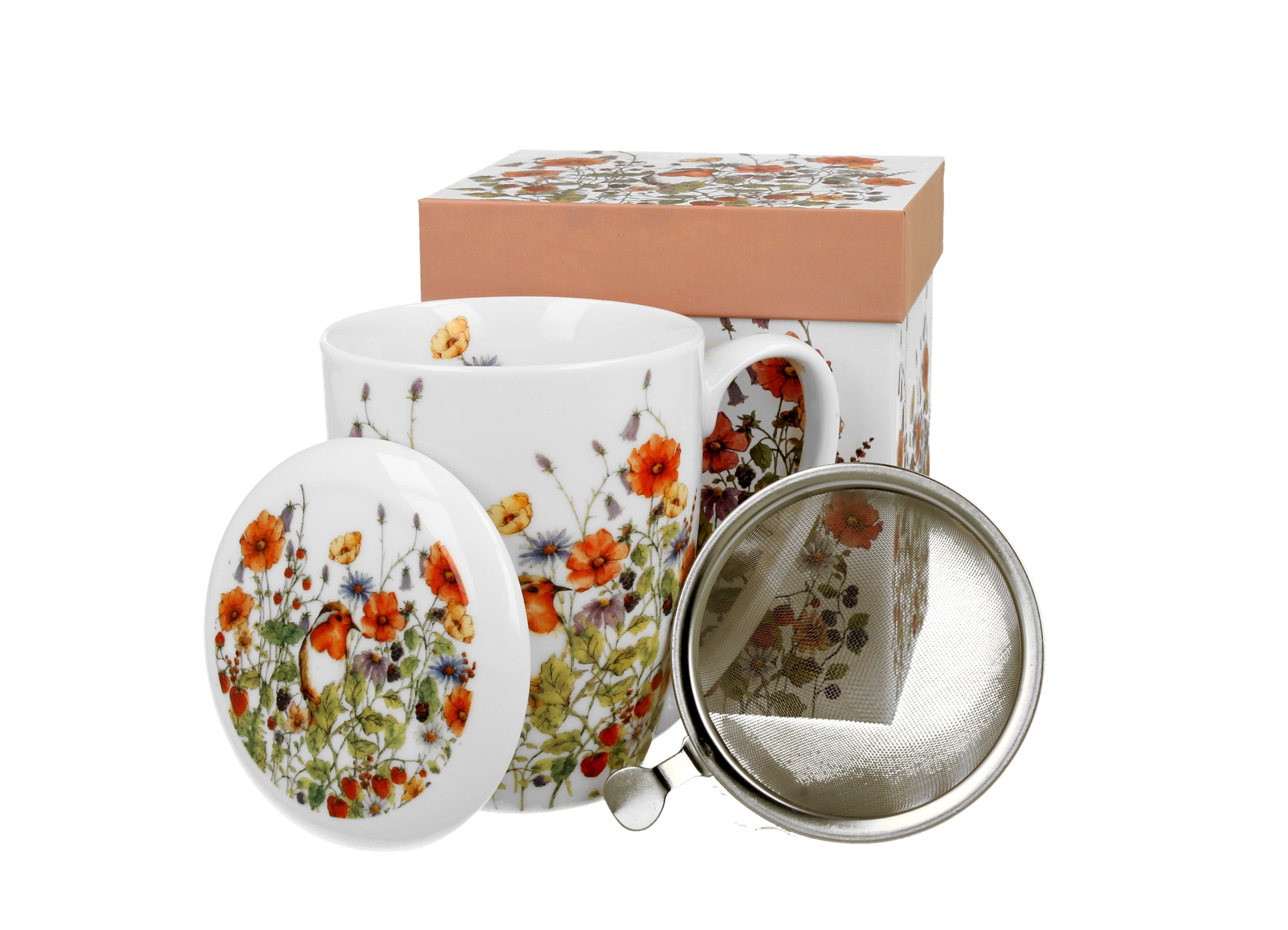 Porcelanowy kubek z zaparzaczem to znakomity wybór dla miłośników herbaty, ziół i kawy. Wykonany z wysokiej jakości porcelany New Bone China, zachwyca elegancką kremowo-białą barwą i delikatnym połyskiem. Motyw polnej łąki, z wiosennymi kwiatami i uroczym ptaszkiem, dodaje mu unikalnego charakteru. Pojemność 360 ml pozwala cieszyć się odpowiednią porcją ulubionego napoju, a dołączona pokrywka oraz zaparzacz sprawiają, że przygotowanie aromatycznych naparów staje się wyjątkowo proste. Kubek łączy w sobie praktyczność z estetyką, co czyni go niezastąpionym zarówno w codziennym użytkowaniu, jak i jako drobny, ale przemyślany upominek.