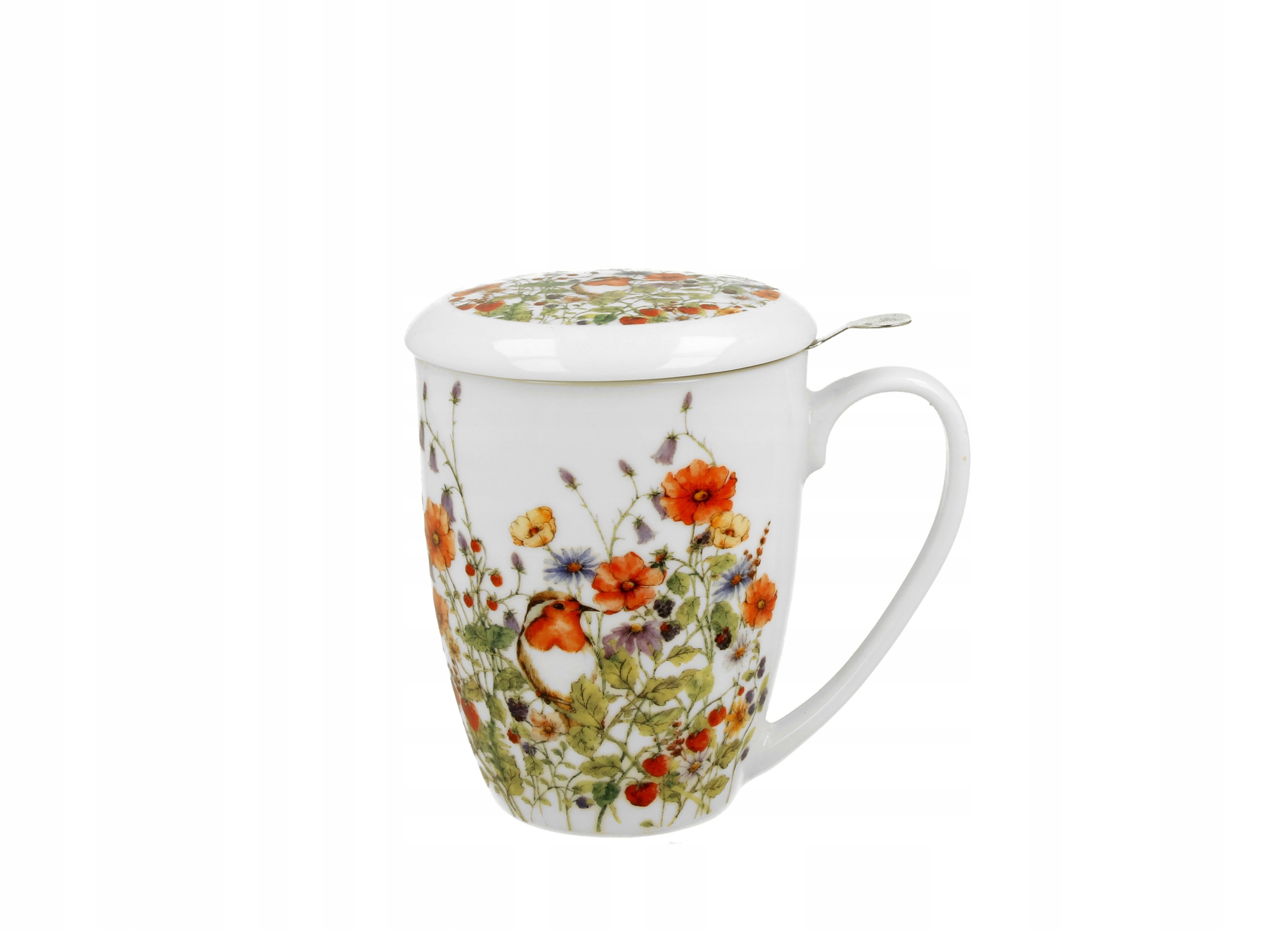 KUBEK Z ZAPARZACZEM POKRYWKĄ PORCELANOWY 380ML DO HERBATY ZIÓŁ KAWY