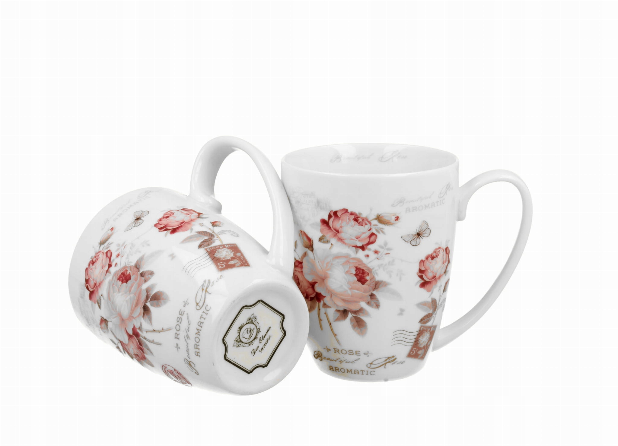 Komplet dwóch kubków 380 ml SECESJA wchodzący w skład serii Duo Classics, wykonany z porcelany New Bone China, która charakteryzuje się naturalnym kremowo-białym kolorem z delikatnym połyskiem oraz wyjątkową wytrzymałością i trwałością, zachowując lekkość i finezję.