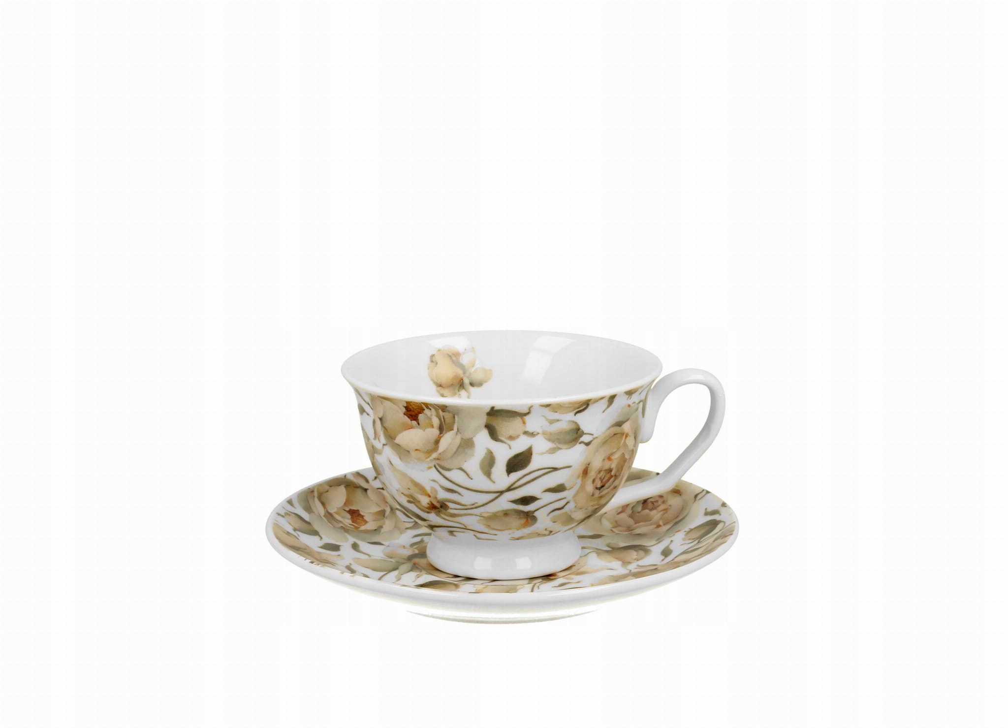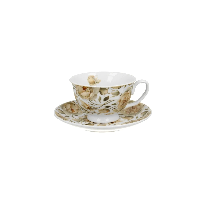 Filiżanka ze spodkiem Duo English Roses White to elegancki dodatek, który wniesie romantyzm do Twojej kuchni.
