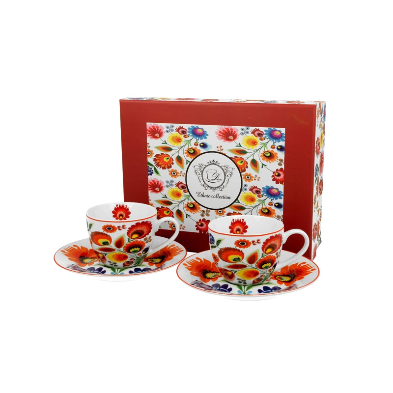 Komplet 2 filiżanek do espresso z spodkami Duo Łowicz to elegancki zestaw, który doda uroku każdej kawowej chwili.