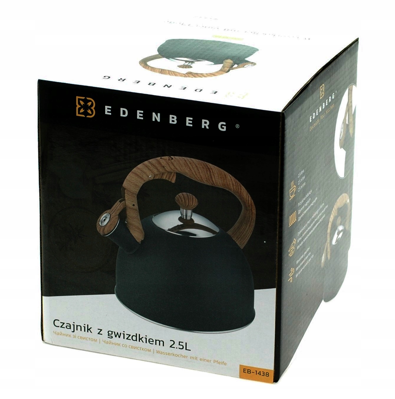 Czajnik nierdzewny marki EDENBERG to wysokiej jakości narzędzie, które pozwala na szybkie i skuteczne zagotowanie wody na kuchence. Czajnik wykonany jest z trwałej, nierdzewnej stali, co gwarantuje jego niezawodność i długą żywotność.