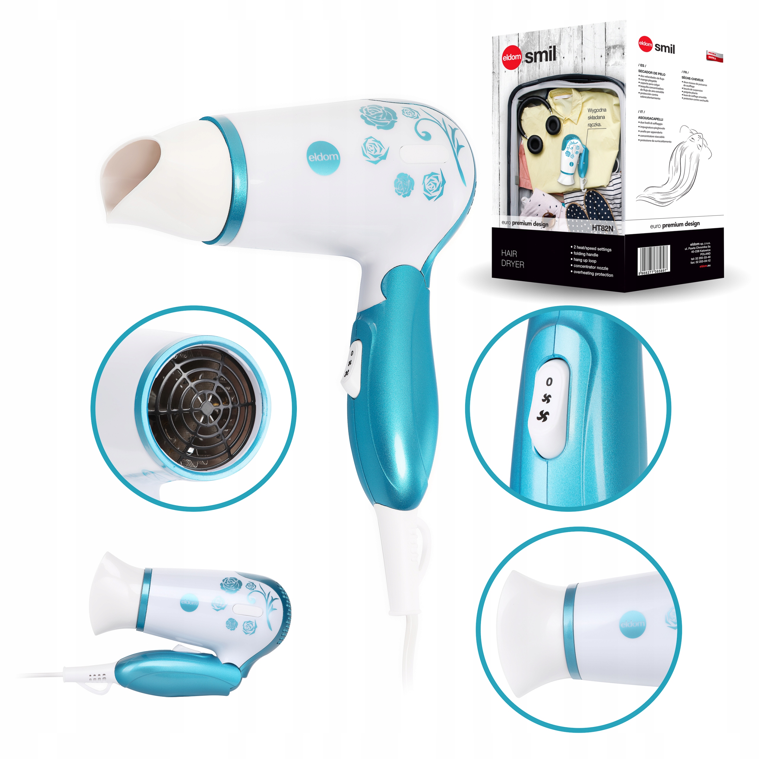 HT82N Eldom – stylowa suszarka do włosów na co dzień i w podróży!