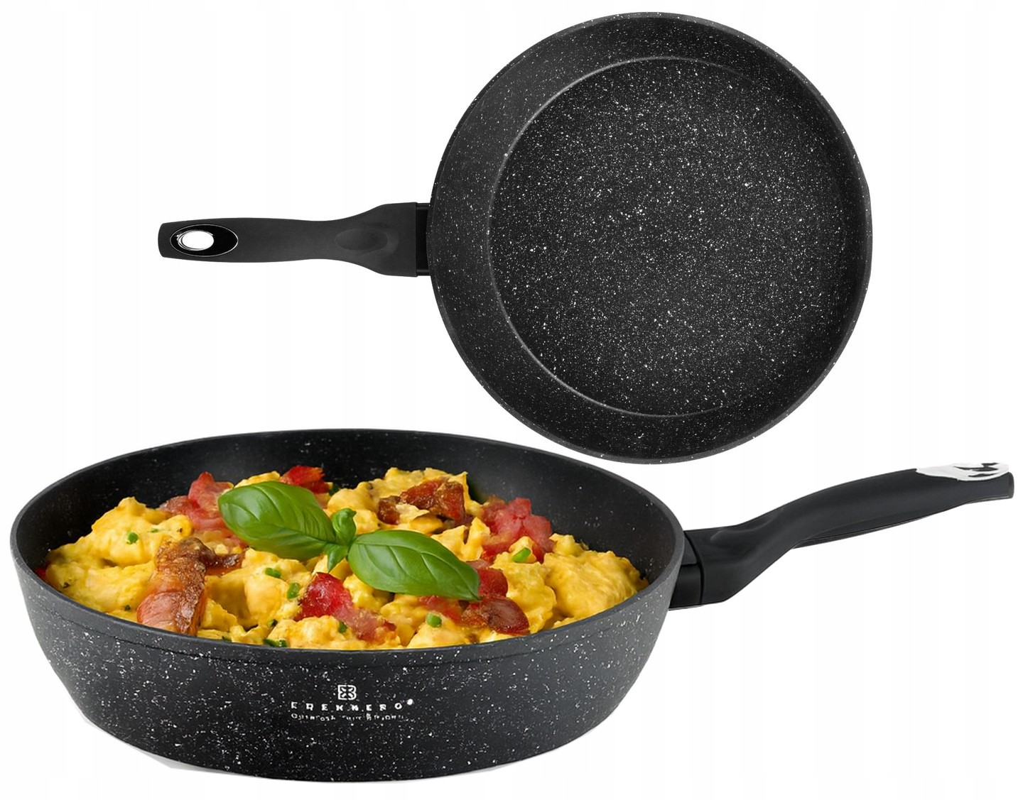 - Marmurkowa powłoka umożliwia niskotłuszczowe smażenie i równomierne rozprowadzanie ciepła.