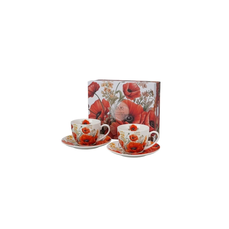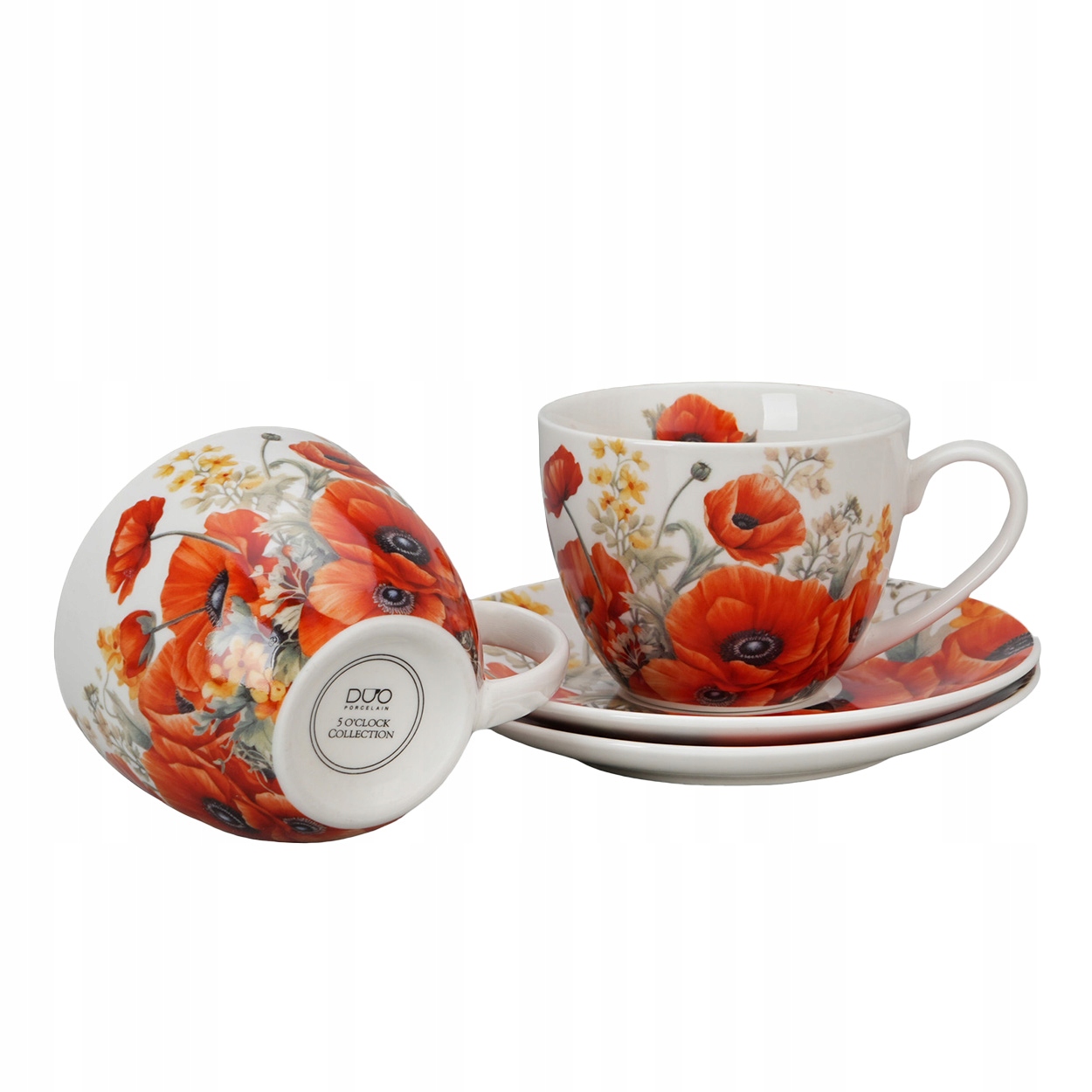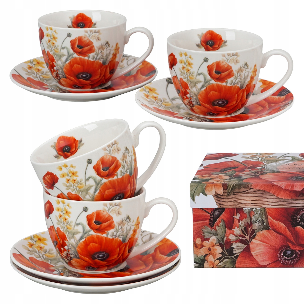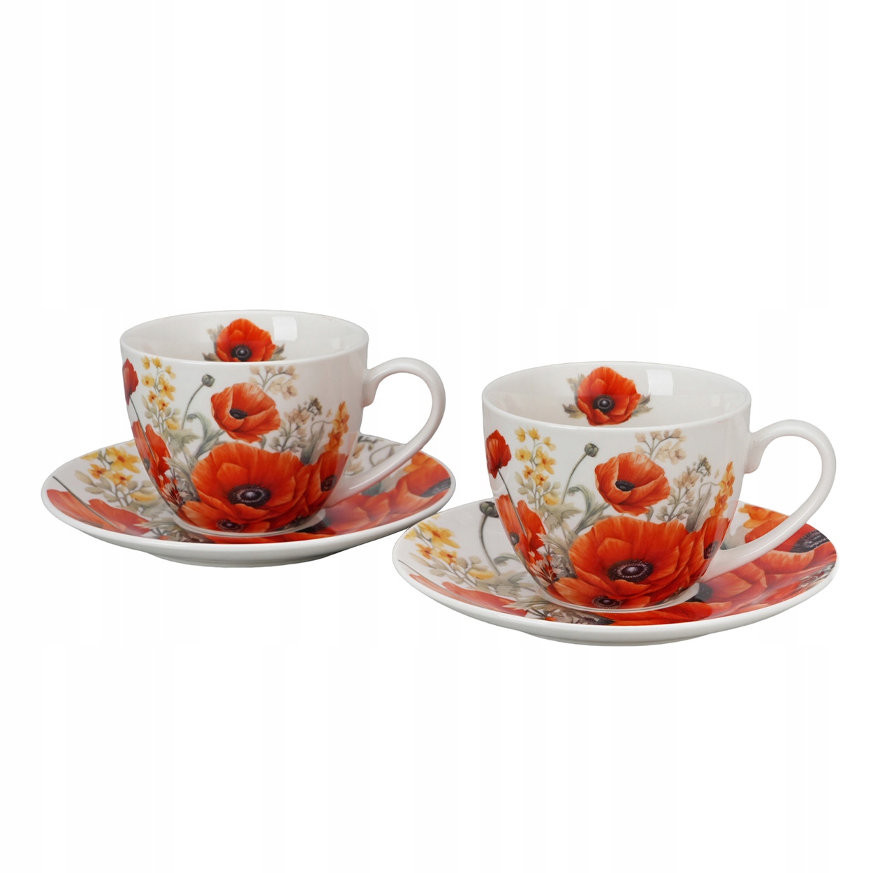 Porcelanowe filiżanki z intensywnym wzorem czerwonych maków – wyrazisty design i codzienna elegancja