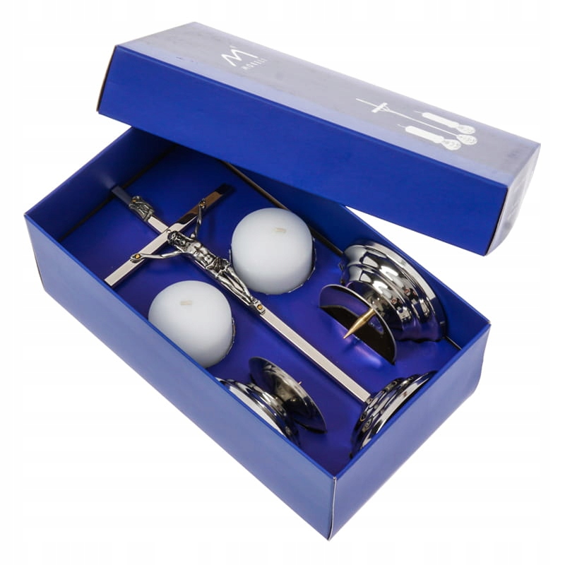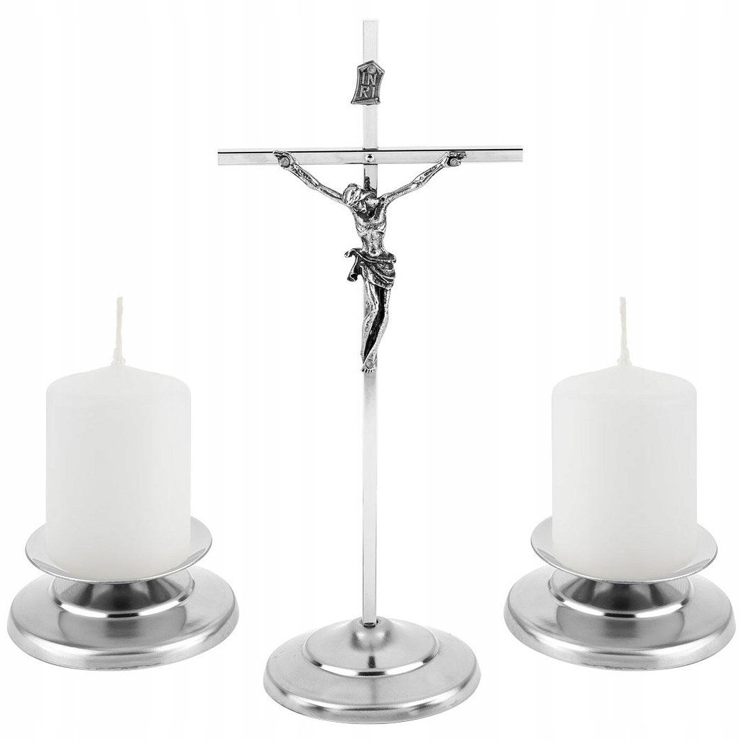 Solidny krzyż i świeczniki cechuje najwyższa jakość i trwałość. Krzyż wykonany został z pręta mosiężnego pokrytego chromem i stali nierdzewnej, wizerunek Chrystusa ze stopu cynku pokrytego powłoką galwaniczną chroniącą przed korozją, natomiast świeczniki wykonano ze stali nierdzewnej. Całość zabezpieczono wysokiej jakości lakierami, tak by zakupiony zestaw kolędowy był trwały i służył przez wiele lat.