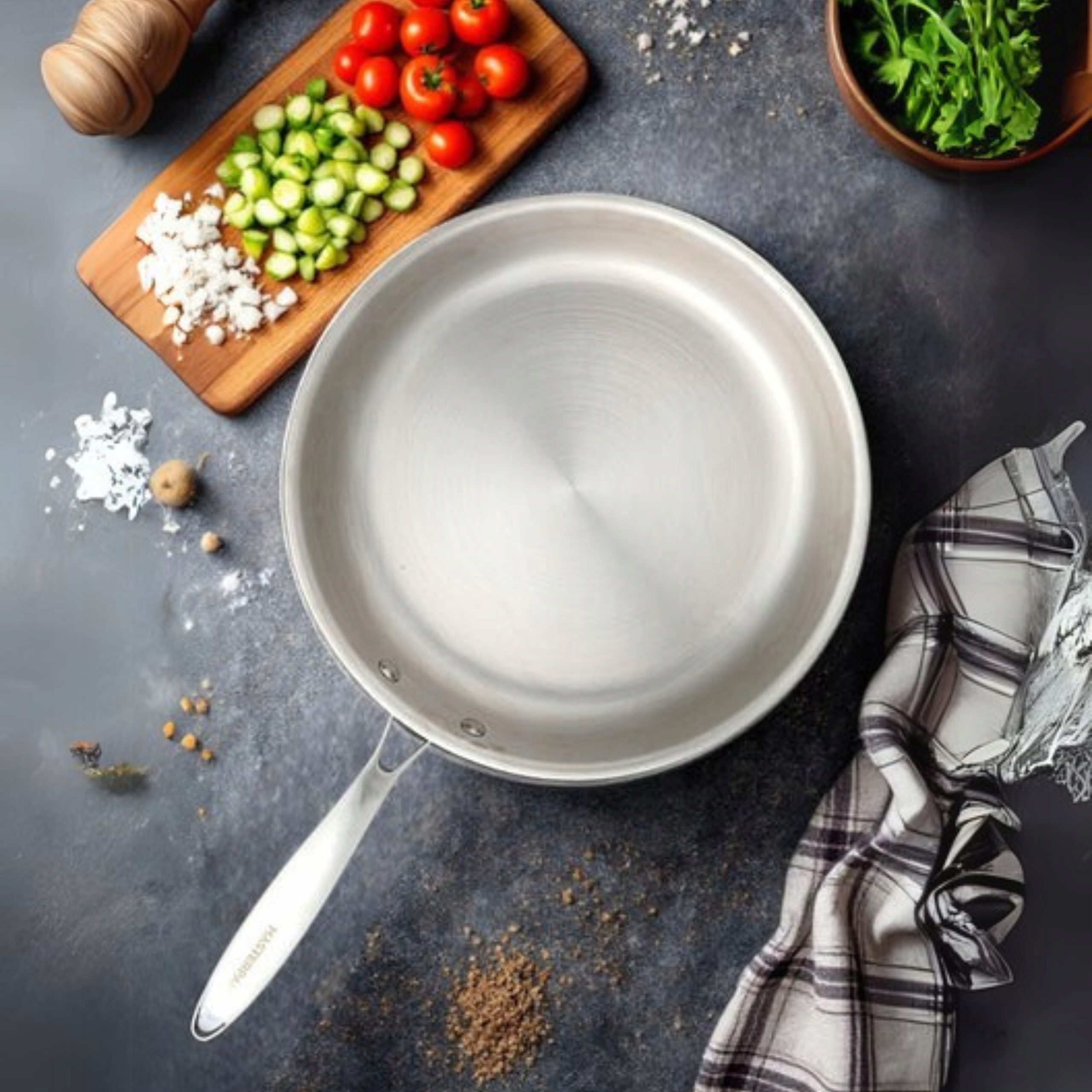 Udoskonal swoje kulinarne doświadczenia dzięki precyzyjnie wykonanej patelni MASTERPAN ze stali nierdzewnej (22 cm). Zaprojektowana z wykorzystaniem wysokiej jakości stali nierdzewnej Tri-Ply, patelnia ma solidną grubość 2,5 mm, co zapewnia doskonałe zatrzymywanie ciepła i równomierne rozprowadzanie temperatury podczas gotowania.