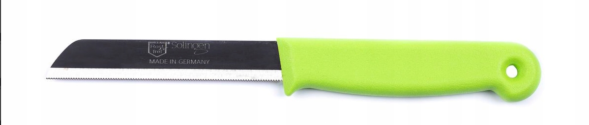 Ten nożyk do warzyw i owoców to mały, ale niezastąpiony pomocnik w każdej kuchni. Został wykonany z najlepszej niemieckiej stali nierdzewnej, dzięki czemu gwarantuje trwałość i niezawodność. Jego ząbkowane ostrze doskonale radzi sobie z krojeniem delikatnego pieczywa, pomidorów oraz innych miękkich produktów. To narzędzie, które sprawdzi się zarówno w codziennym przygotowywaniu posiłków, jak i przy bardziej wymagających kuchennych wyzwaniach. Wygodna, ergonomiczna rączka zapewnia maksimum komfortu, a kolorowe akcenty dodają kuchni nowoczesnego designu.