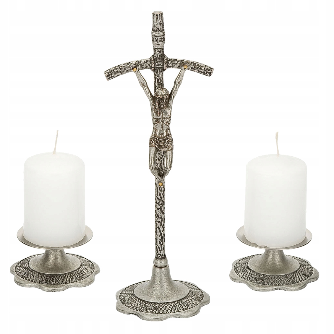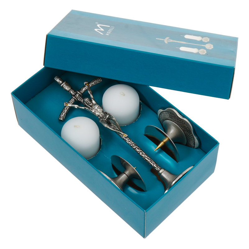 Komplet kolędowy nie tylko przykuwa wzrok swoim pięknem, ale jest także niezwykle funkcjonalny. Papieski stojący krzyż wraz z lichtarzykami oraz świeczkami stanowi idealne połączenie tradycji z nowoczesnością. Mimo kompaktowych rozmiarów łatwo można go ustawić w dowolnym miejscu, a jego elegancki design sprawia, że pasuje do każdej aranżacji. Dzięki solidnym materiałom wykonania, zestaw jest odporny na uszkodzenia i utrzymuje swój blask przez wiele lat. To doskonały wybór dla tych, którzy cenią zarówno estetykę, jak i praktyczne rozwiązania.