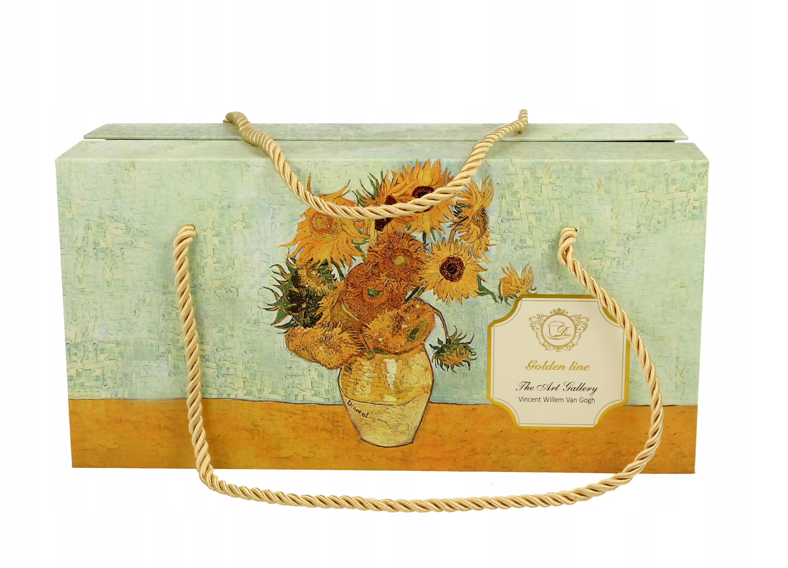 Linia wykonana z białej porcelany wewnątrz zdobionej fragmentem reprodukcji obrazu "Słoneczniki" V. van Gogha.