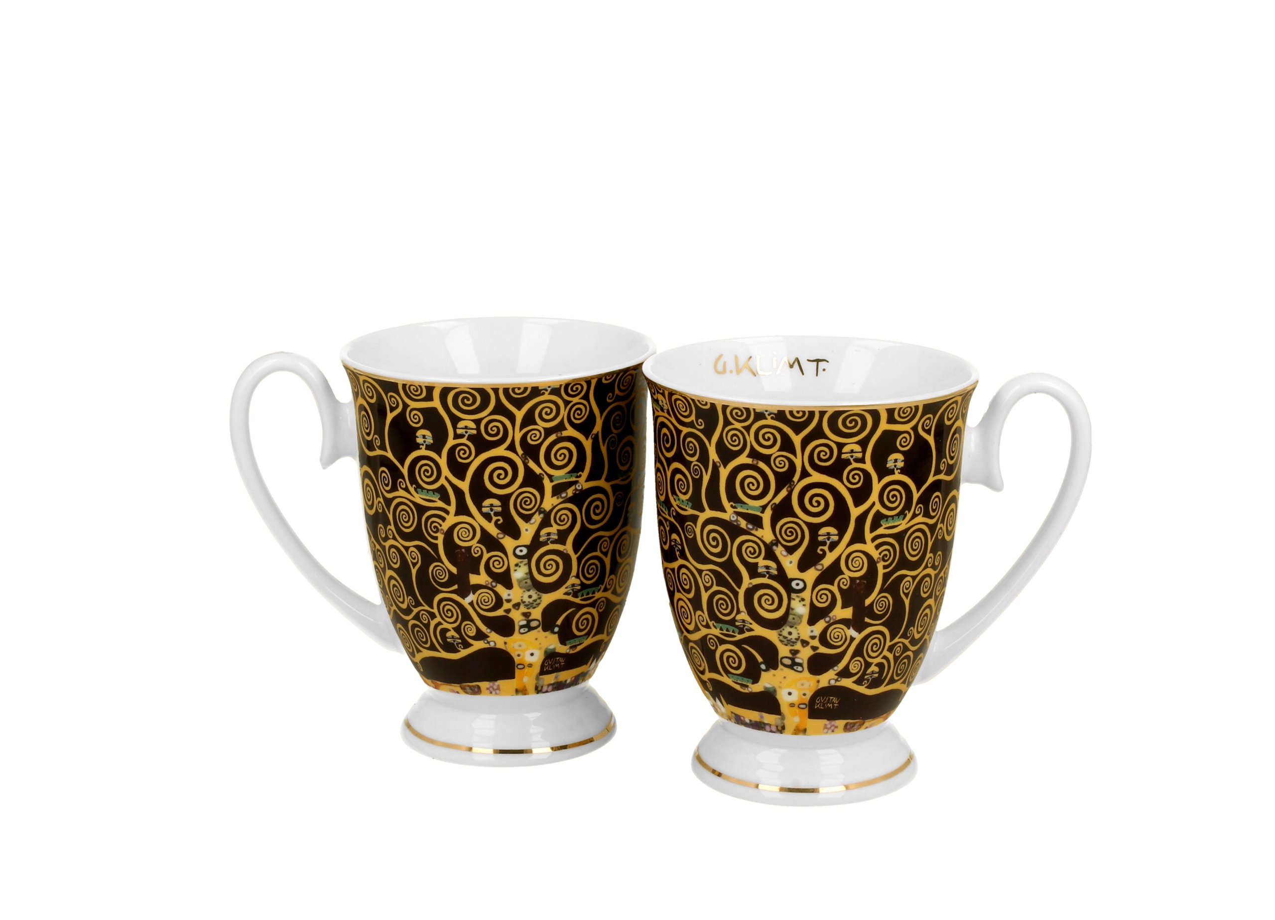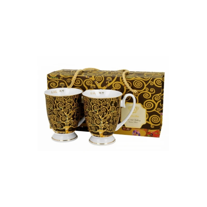 Komplet dwóch kubków royal TREE OF LIFE inspired by Gustav Klimt wchodzący w skład serii Golden Line, wykonany z porcelany New Bone China, która charakteryzuje się naturalnym kremowo-białym kolorem z delikatnym połyskiem oraz wyjątkową wytrzymałością i trwałością, zachowując lekkość i finezję.
