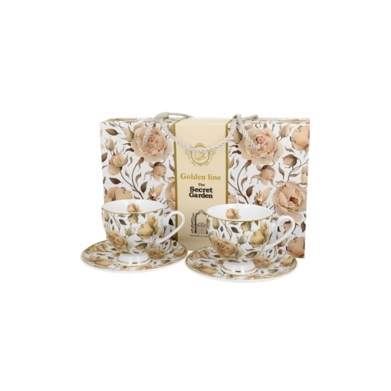 Filiżanki z tej kolekcji łączą w sobie subtelny urok i klasyczny styl, który przypadnie do gustu każdemu miłośnikowi estetycznych dodatków do domu. Wzór English Roses White, zdobiący filiżanki i spodki, wprowadza romantyczną atmosferę, idealną na chwile relaksu przy kawie lub herbacie. Zestaw wykonany został z porcelany New Bone China, cenionej za swoją delikatność, trwałość oraz piękny połysk. Całość zapakowana w dekoracyjne pudełko nadaje się na upominek, zaskakując zarówno estetyką, jak i praktycznością. To idealny wybór na prezent, który z pewnością zrobi wrażenie.