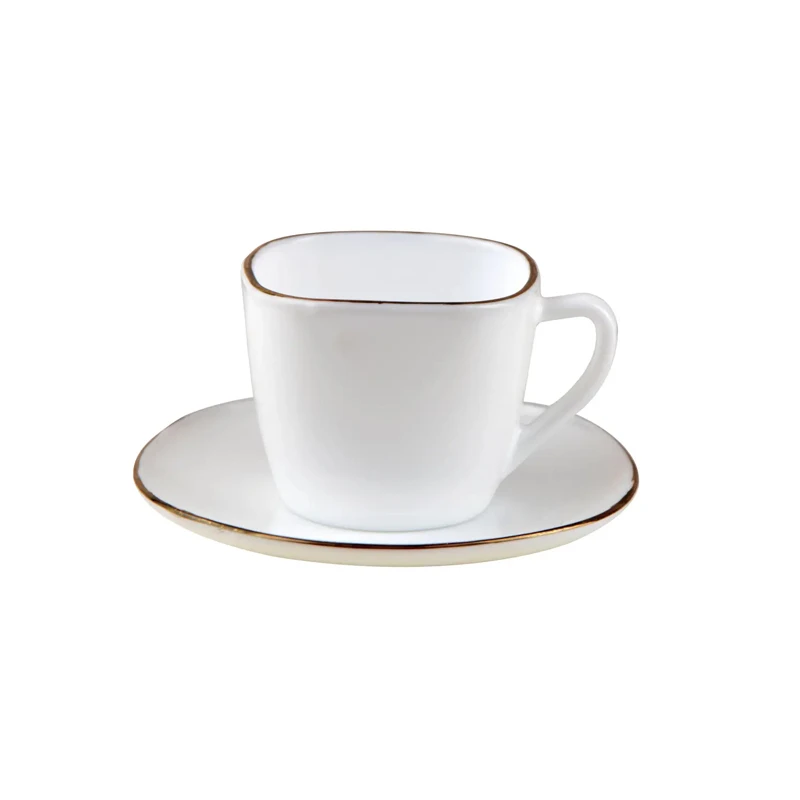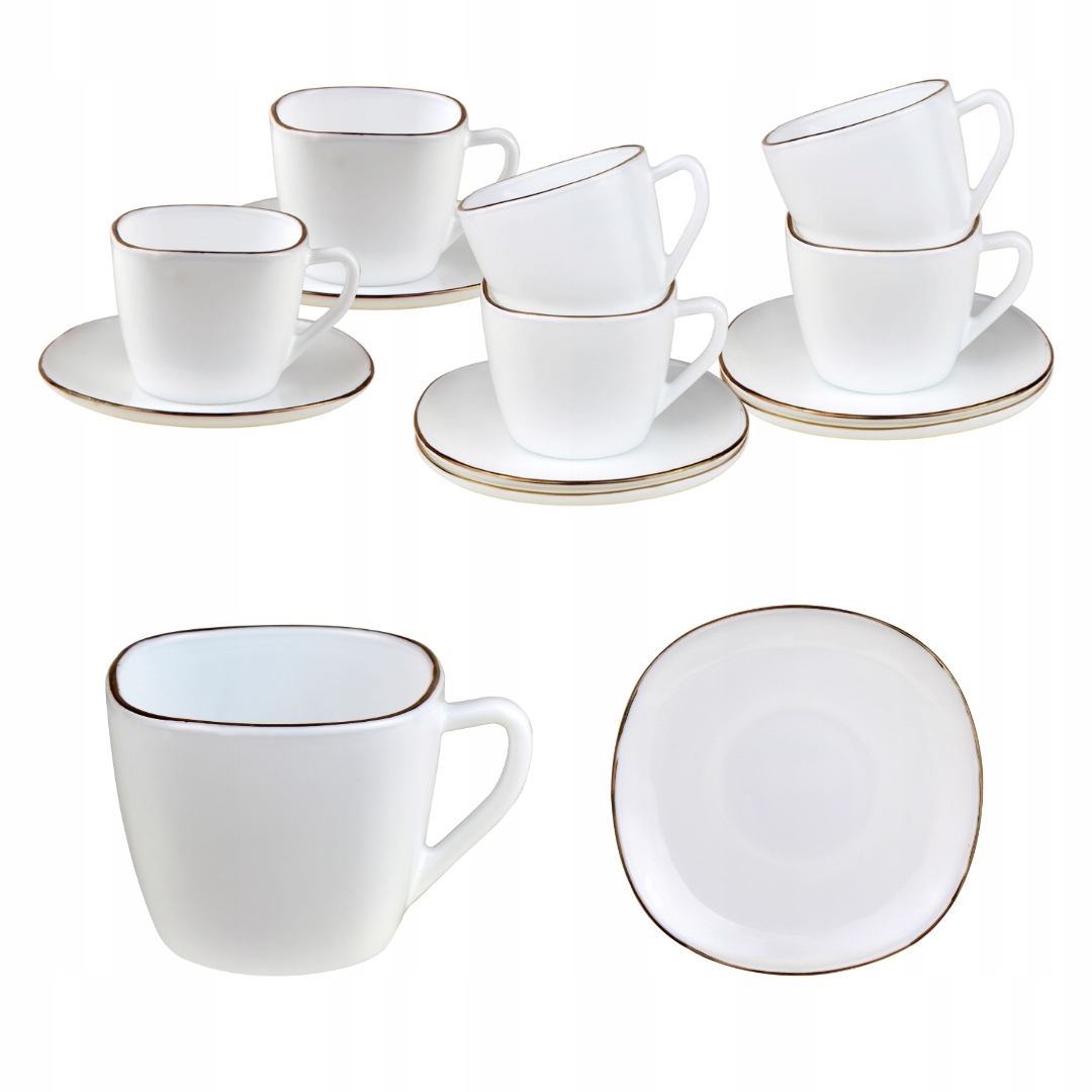 Serwis kawowy zestaw 6 szt. filiżanka + spodek komplet biały złoty to elegancki zestaw porcelanowy, który doda klasy każdemu spotkaniu przy kawie lub herbacie.