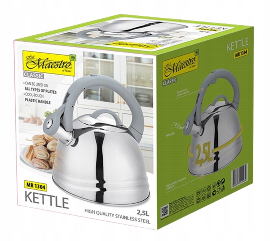 Czajnik MAESTRO MR1304C o pojemności 2,5 litra pozwoli przygotować gorący napój dla całej rodziny czy też gości.