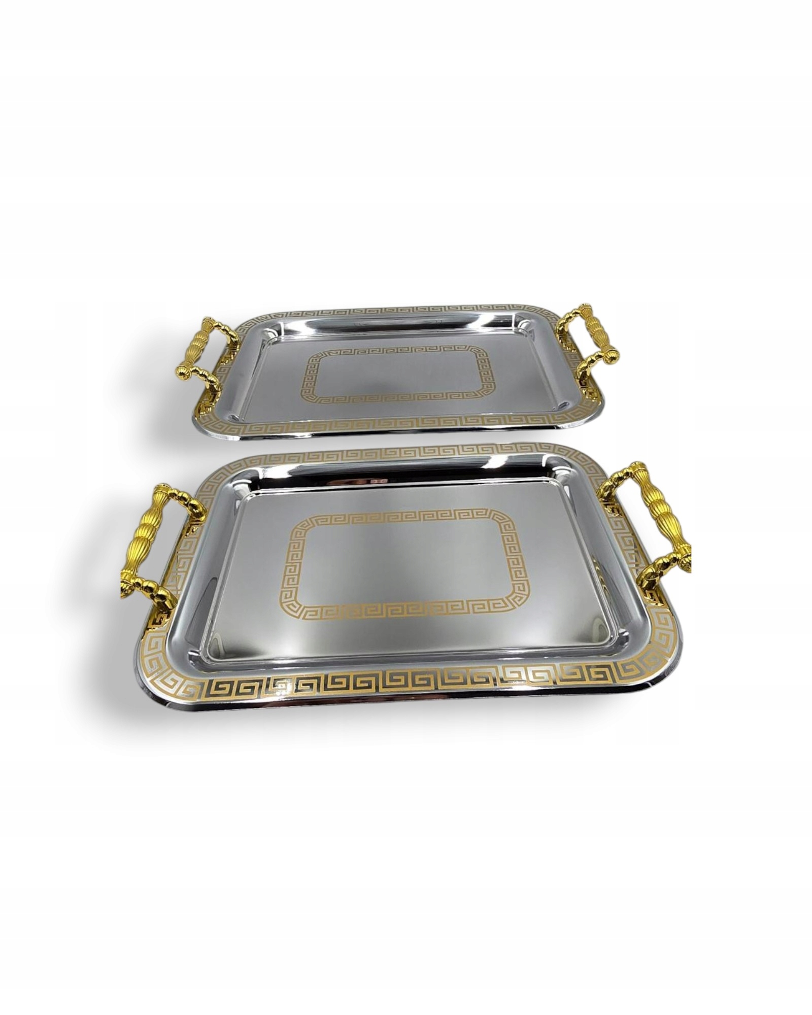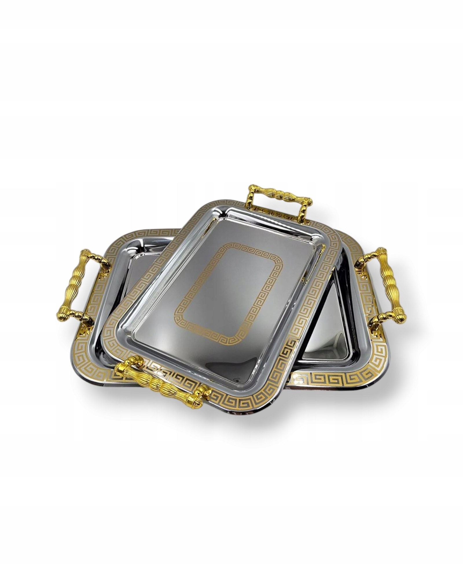 - Stylowe wykończenie: Zdobiące srebrne wzory nadają tacom wyjątkową elegancję.
