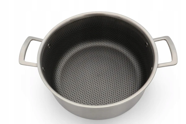 - Struktura plastra miodu zwiększa trwałość powłoki i pozwala na zdrowsze gotowanie z minimalną ilością tłuszczu.