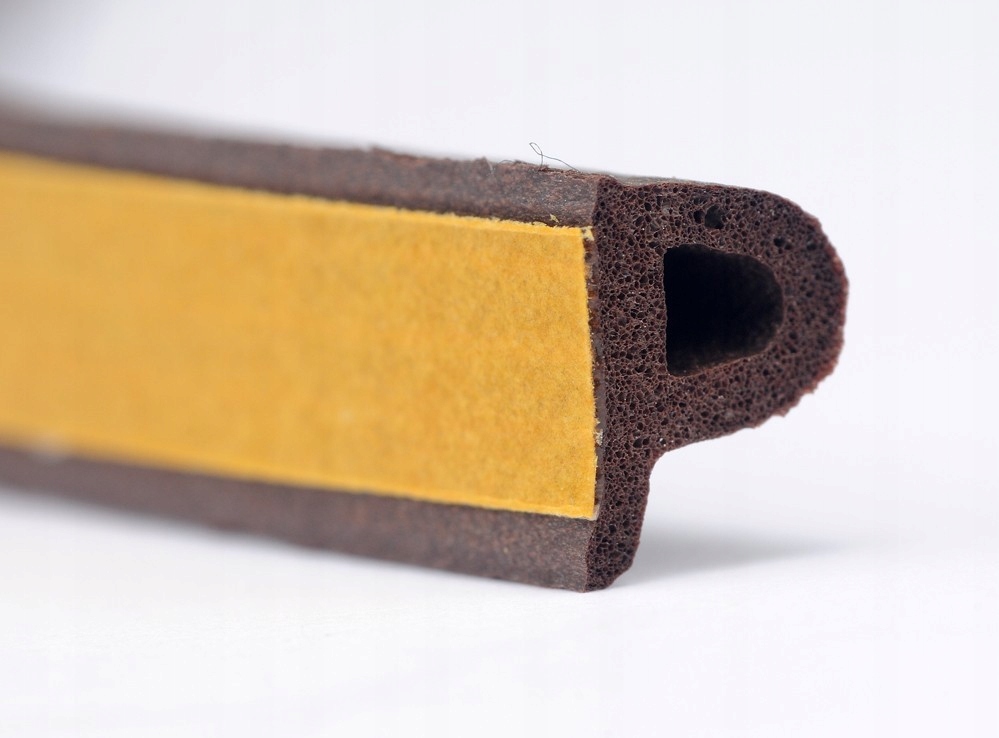 Uszczelka samoprzylepna do okien i drzwi typu P, kolor brązowy. Wymiary 9x5,5mm. Pakowana w kartoniku 2x3m. Wykonana z gumy EPDM, która charakteryzuje się bardzo dobrą odpornością na działanie warunków atmosferycznych, promieniowania słonecznego UV, tlenu czy wody. Posiadają warstwę samoprzylepną wzmocnioną siatką z włókna szklanego. Uszczelki samoprzylepne zapewniają skuteczną ochronę przed zimnem, wiatrem, ciepłem, hałasem, deszczem czy insektami. Pozwalają oszczędzić energię do 35%. Przeznaczone do stosowania w szczelinach o wymiarach 3,0~5,0mm.